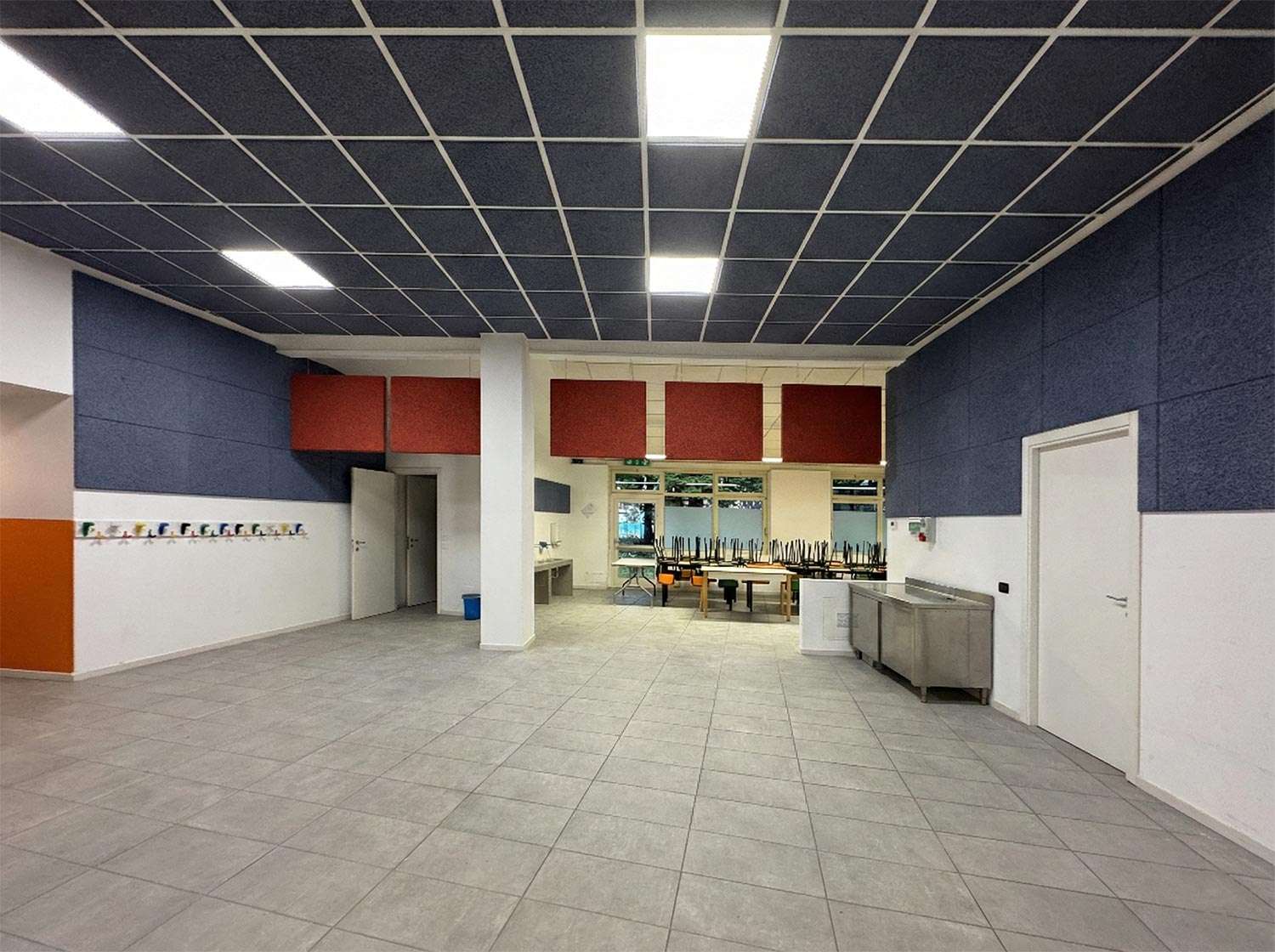 Queste soluzioni hanno consentito una riduzione significativa del livello sonoro e un corretto equilibrio dei tempi di riverberazione, nel pieno rispetto delle normative sull’edilizia scolastica.