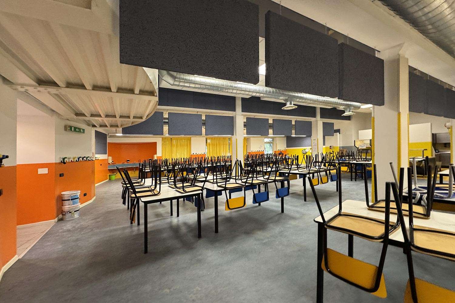 Il problema principale riscontrato era di natura acustica, in particolare negli ambienti refettorio, spazi ampi per necessità funzionali ma caratterizzati da un riverbero sonoro eccessivo.
