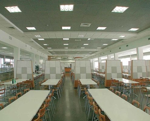 Questo ambiente riveste grande importanza perché non è solo uno spazio per il pranzo, ma anche quello destinato all’aggregazione e all’unico momento di distensione durante la giornata lavorativa.